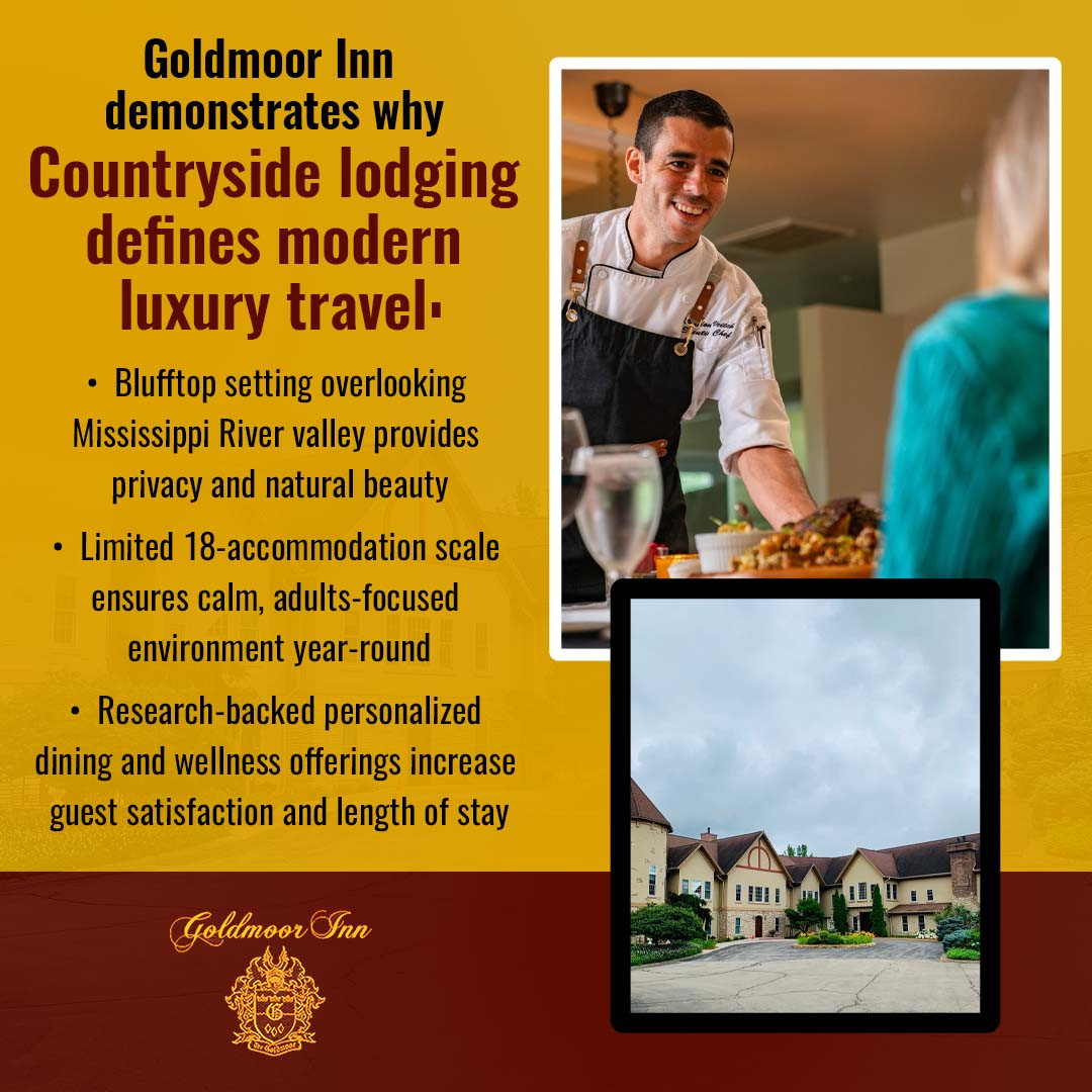 Goldmoor Inn reflects this shift through its countryside location overlooking the Mississippi River valley. Positioned several miles south of the historic district, the property offers guests a quieter environment while remaining accessible to local attractions. This balance has become increasingly relevant as travelers look to slow down without disconnecting entirely from the destination.