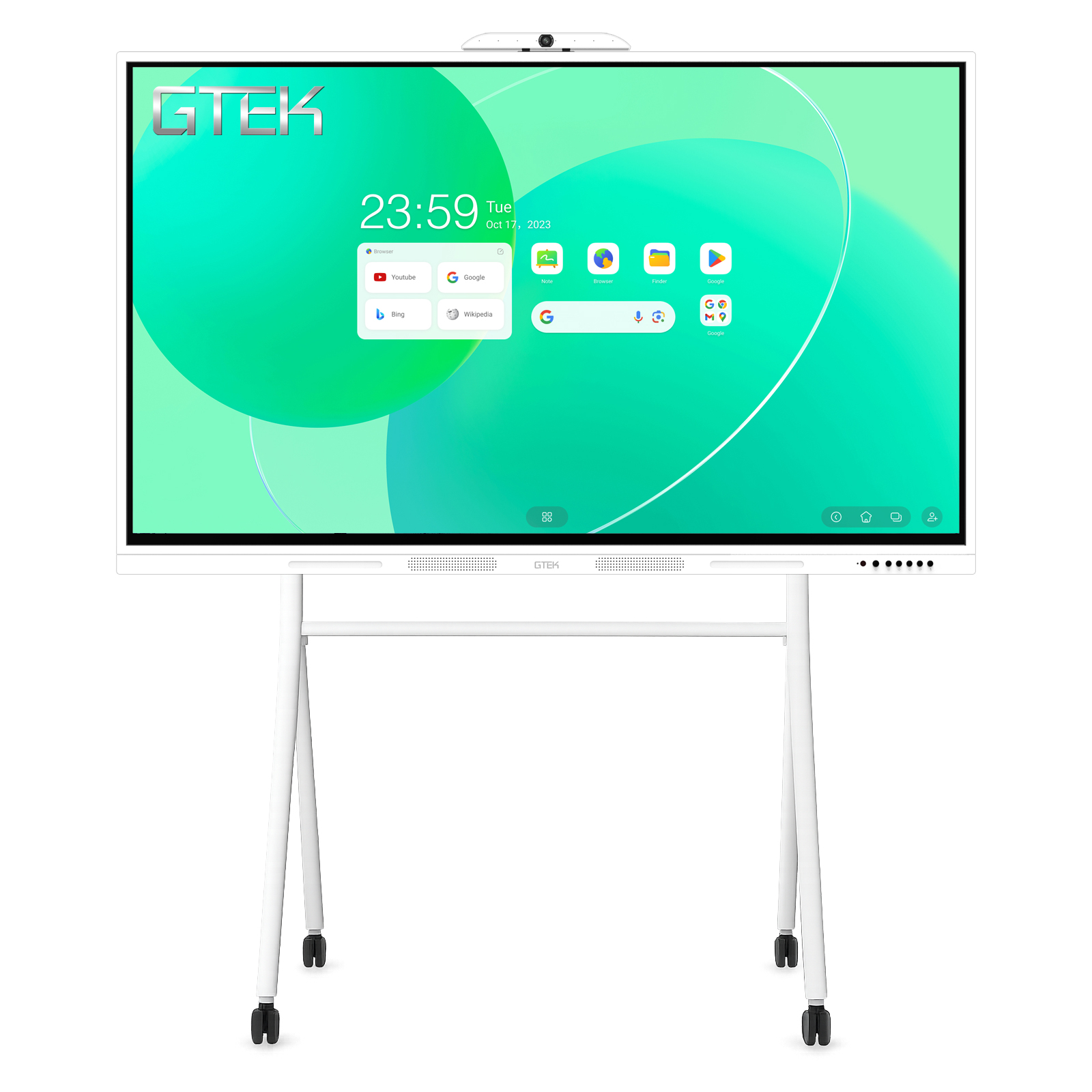 Available in 65″, 75″, 86″, and 98″ sizes, the GTEK upgradeable smart board is suitable for single-user spaces up to large 30-person conference rooms. The system is fully modular, supporting optional plug-in cameras and mobile carts for maximum flexibility.