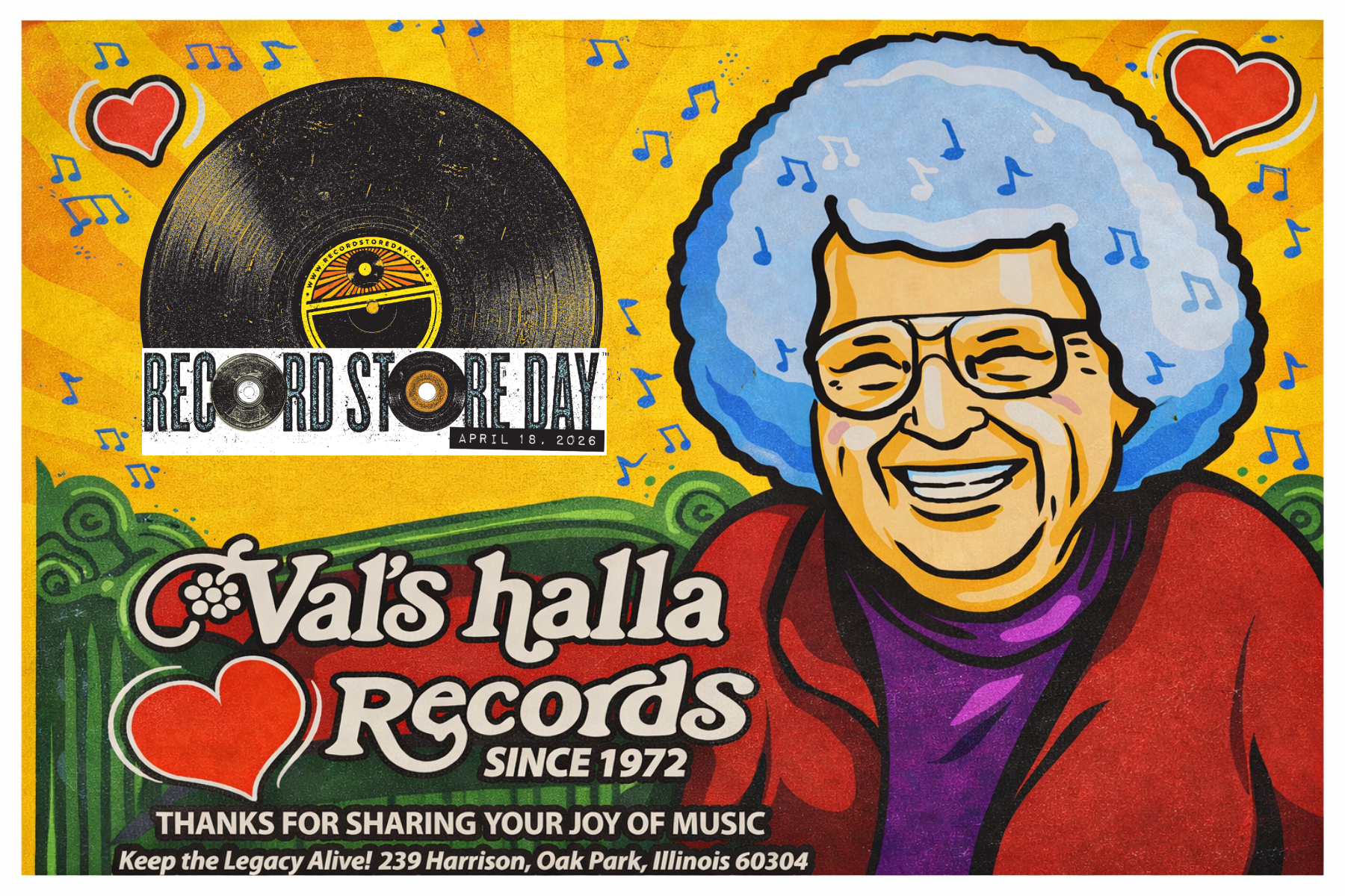 “Record Store Day at Val’s halla brings people together around a shared connection to music,” said Trevor Toppen, proprietor of Val’s halla Records. “That sense of community reflects Val’s founder Val Camilletti’s vision and the legacy she established in Oak Park, which still guides the store.”