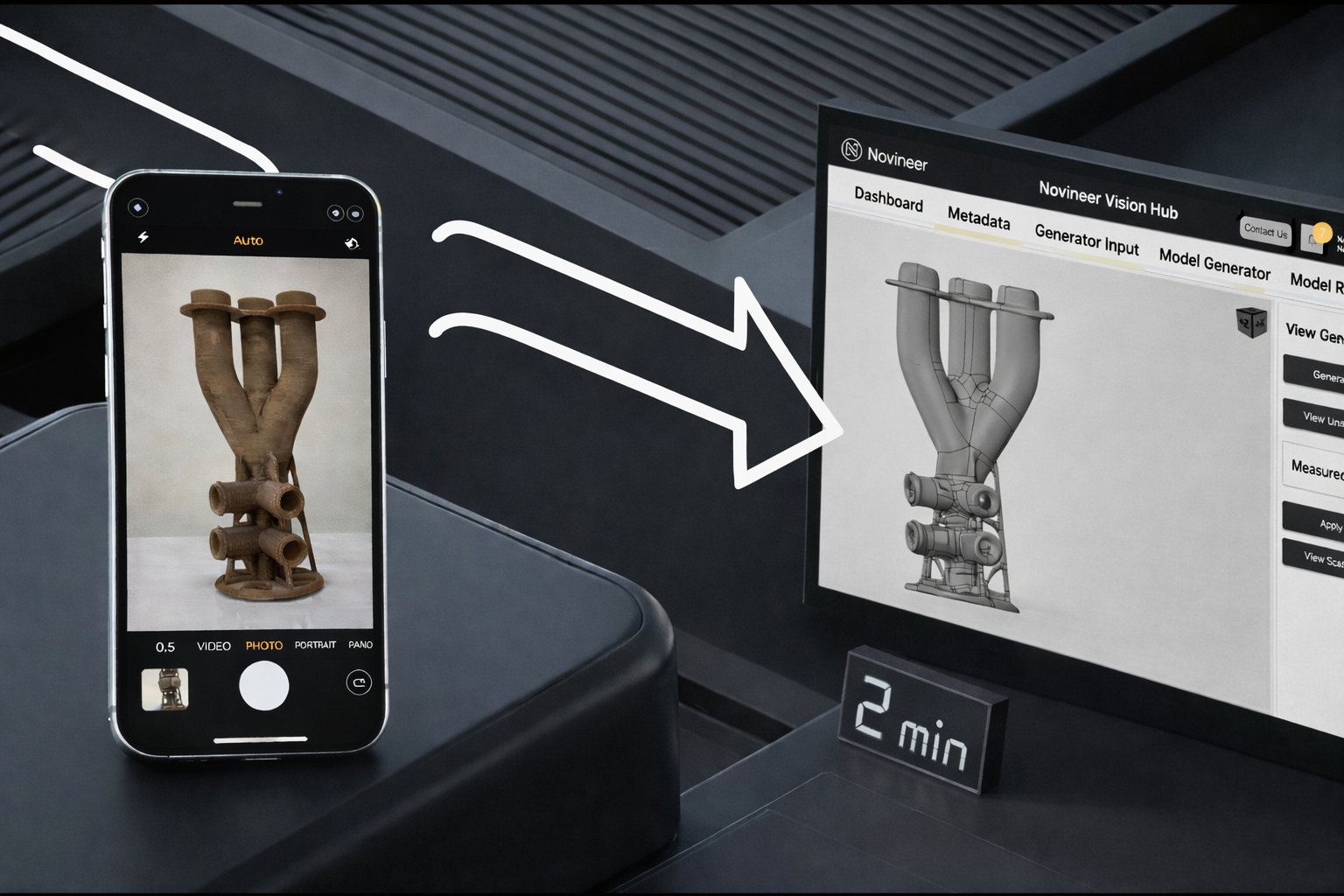 NoviVision generates editable CAD models from smartphone photos in ~2 minutes, closing the digital model gap costing operators and OEMs time and money.
