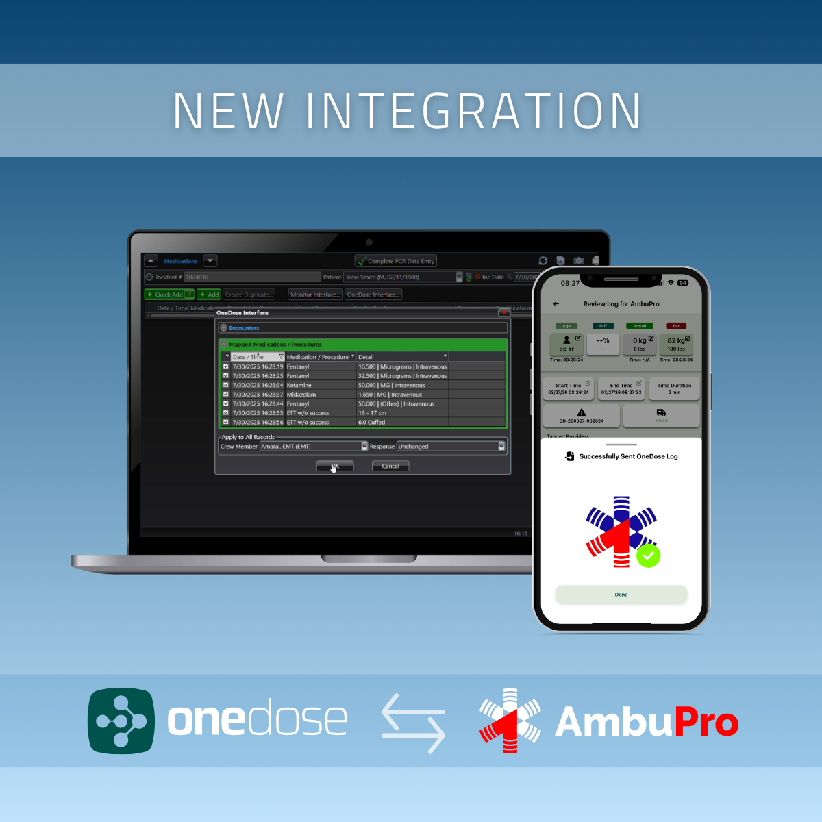 BLOOMINGTON, MN, UNITED STATES, April 15, 2026 /EINPresswire.com/ — OneDose and AmbuPro are now integrated to streamline how EMS providers manage protocols, dosing, documentation, and patient care data across the entire call lifecycle. By connecting OneDose’s real-time EMS protocol app and clinical decision support with AmbuPro’s advanced electronic Patient Care Record platform, agencies can reduce duplicate data entry and improve consistency in patient records from the field to final documentation.