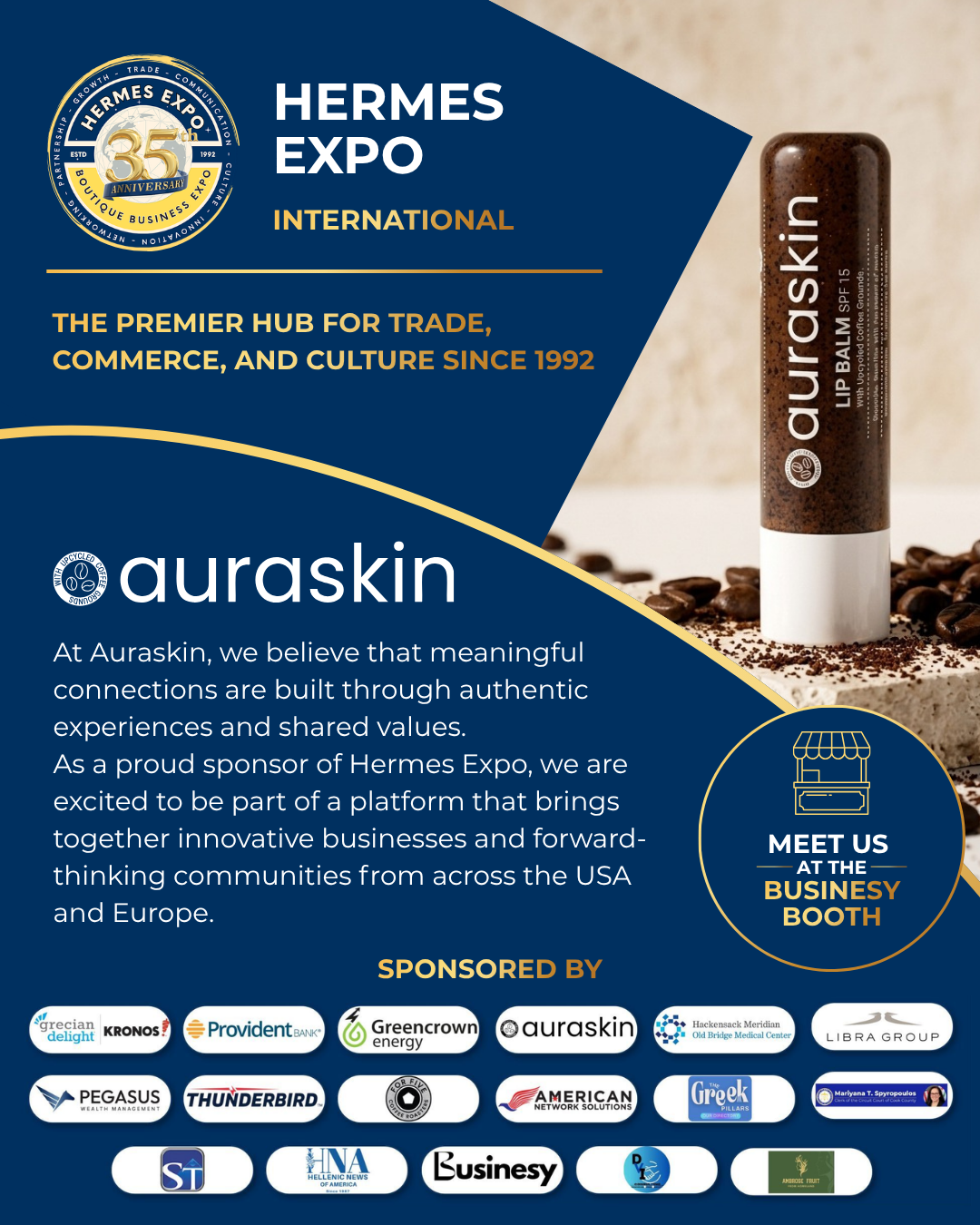 Auraskin to showcase sustainable, microbiome-friendly skincare at the 35th Hermes Expo, connecting Greek-American and international business communities.